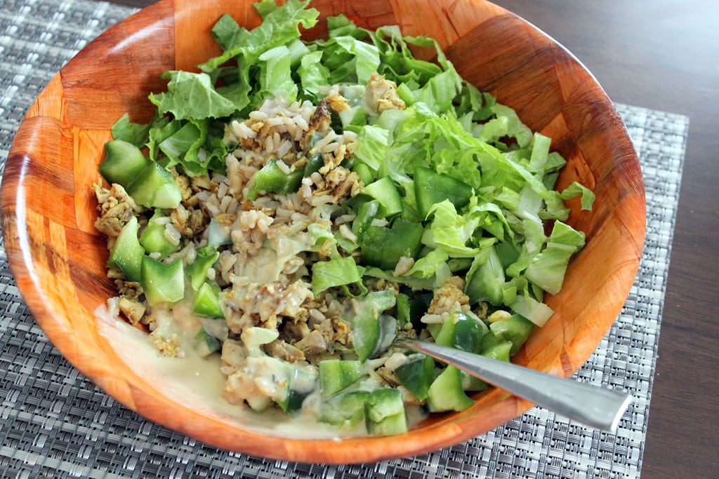 As for food yesterday, I made myself a random leftover salad bowl for lunch using shredded rotisserie chicken, chopped romaine, brown rice, green pepper, and a fun hummus vinaigrette that was hummus + lots of lemon juice + a little olive oil. It was really good – try it!