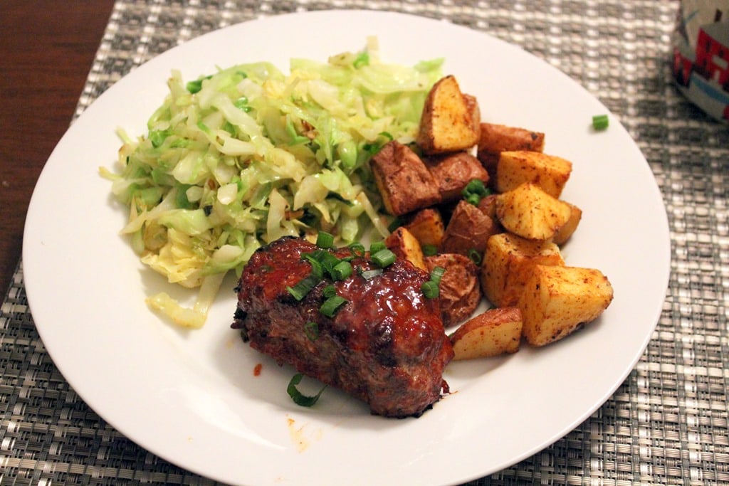 For dinner, we had a Blue Apron – meatloaf! I loooove meatloaf. It was supposed to be with mashed potatoes but I like roasted potatoes better (because of the crispy vs. mushy texture… and ketchup!) and Matt didn’t care either way so roasted it was! Plus some simple sauteed cabbage. Great winter-y meal.