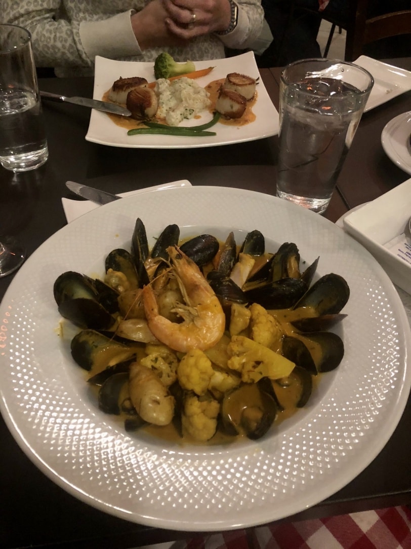I had the bouillabaisse for dinner and it was delicious – I love sopping up the broth with crusty bread.