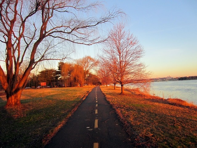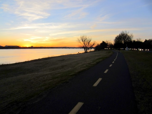 We did a nice 4 mile out and back along the GW Parkway Mt. Vernon Trail while chatting away. On the way back, the rising sun made everything look gold/red! Beautiful!
