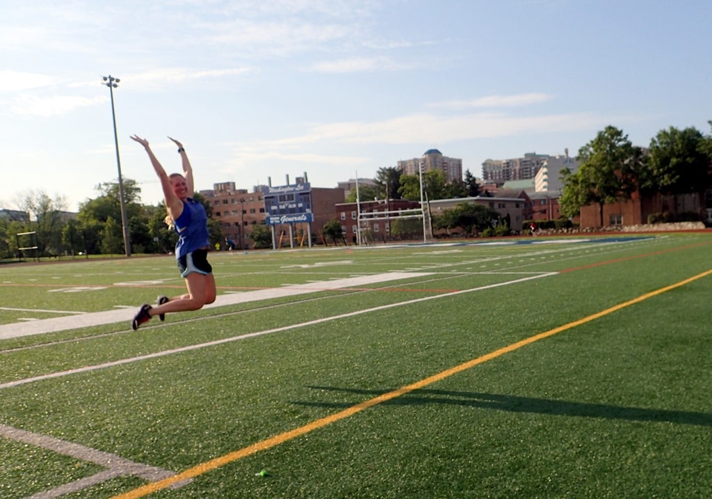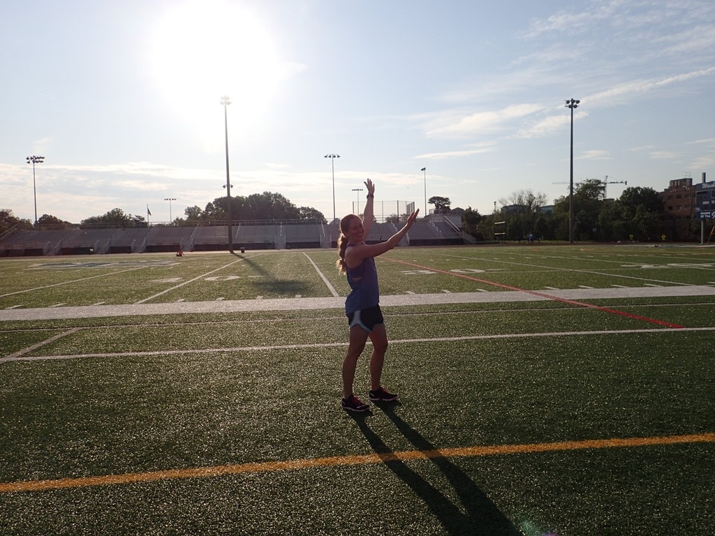 I think this is seriously the first run in like 3 weeks that wasn’t in the rain (or super gloomy). Hooray! At this track this morning we were all like, what is that weird bright orb in the sky?! 🙂