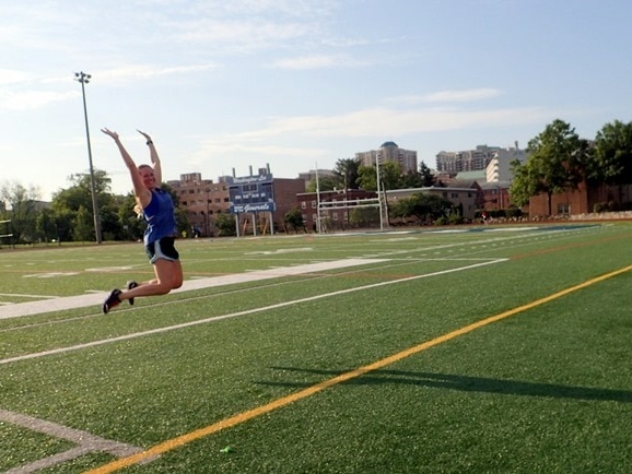 I know, exciting stuff, my friends. As for the actual workout, it wasn’t as awesome as the fact that the sun was out – my legs weren’t really feeling it today, despite a nice rest day Sunday and a low key yoga class yesterday. Oh well – can’t win ‘em all! We did a series of four 1200’s (3 laps) with 1 minute break in between. I hung with my track friends until the last 1200, when I was officially over it and dialed the pace down a notch. 🙂