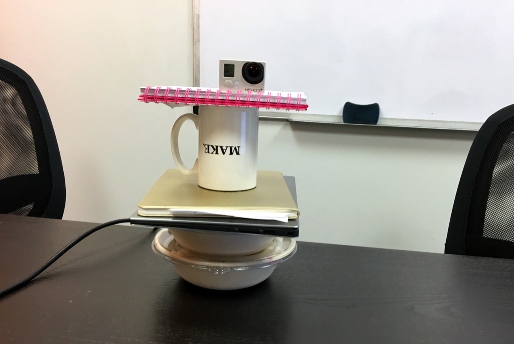 We grabbed lunch and then spent a couple hours in one of the conference rooms at my co-working office filming sports nutrition Q&A audio and videos. The video should be up on his site sometime soon so I’ll be sure to link to it. Here was our super high tech and professional video set up – lol! To get the camera at the right height we used an assortment of our leftover lunch containers, my laptop and notebooks, and a mug. Just keepin’ it real over here, my friends.