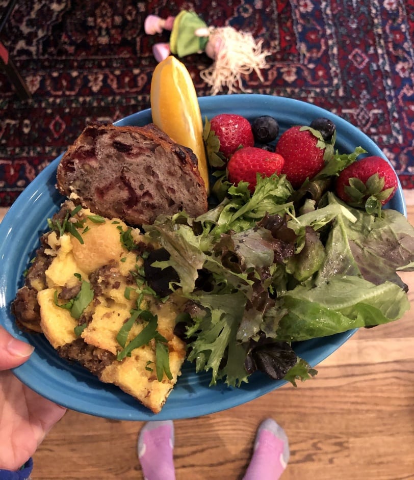 Our refuel once we got home was a delicious sausage and egg casserole with some cranberry and nut bread, fruit, and salad. Hit the spot!