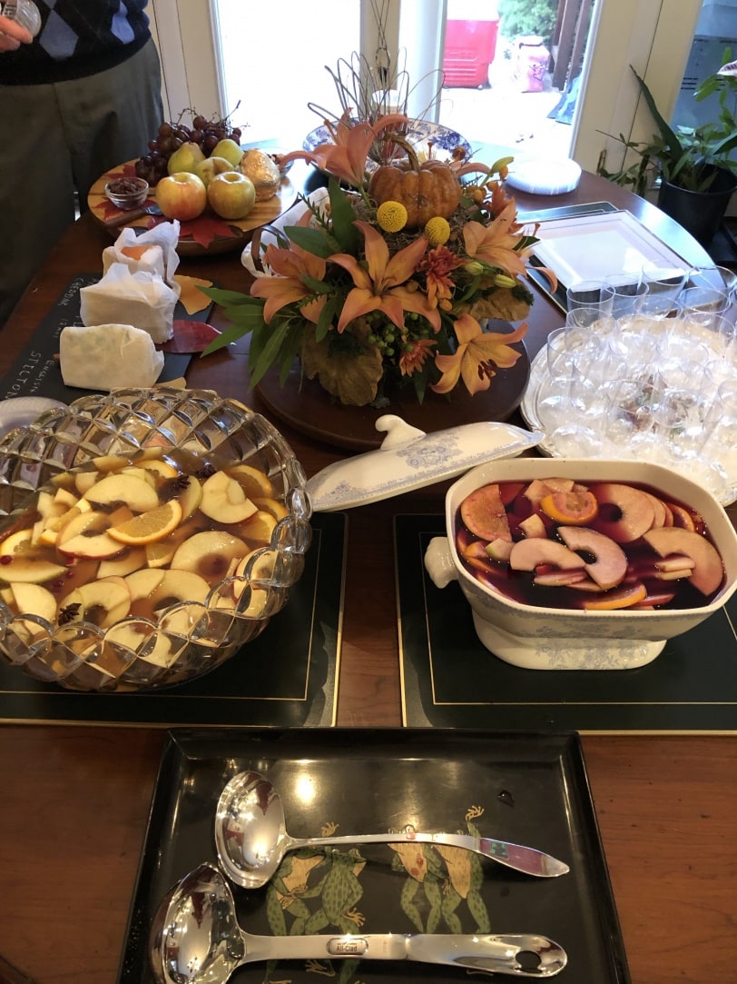 To start, we had a delicious spread of appetizers, and dueling sangrias – a white sangria, and my red Easy Fall Sangria! Both were hits but I liked mine better, of course. 😉