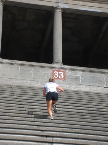 Kris wasn’t kidding about it being hard! You can’t tell in the pictures but the stairs are double the height of normal stairs AND farther apart, too. Yikes! You literally have to do a flying leap to get up each of them.