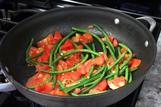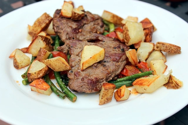 Our last Blue Apron meal from last week was a classic: steak and potatoes, but with a really good long bean and garlicky tomato addition.
