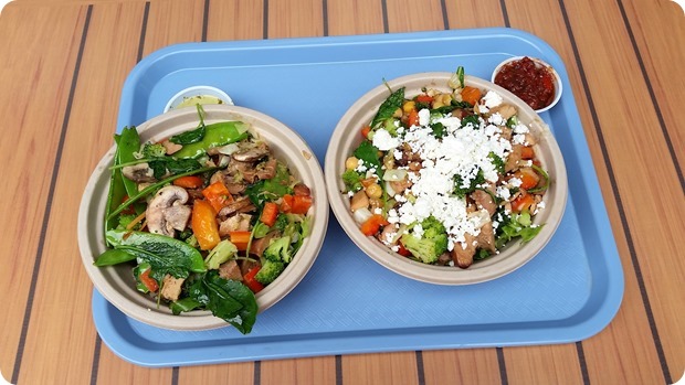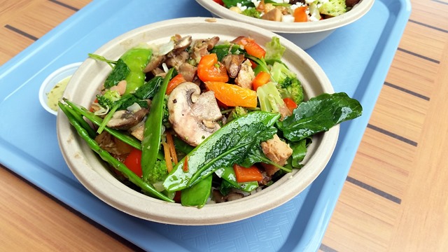 It’s a fast casual type place where you can build your own bowl (or choose one of their creations) – you pick a grain (brown rice, white rice, quinoa) or green (or both!), a protein (meat or beans/tofu), as many veggies as you like, and toppings/sauce. I made a brown rice, greens, chicken, and veggie bowl with green coconut curry on top. They make all their sauces from scratch (so no weird additives, and they are not crazy salty, yay) and everything is super fresh – I’ll definitely be back here more often! Loved it!