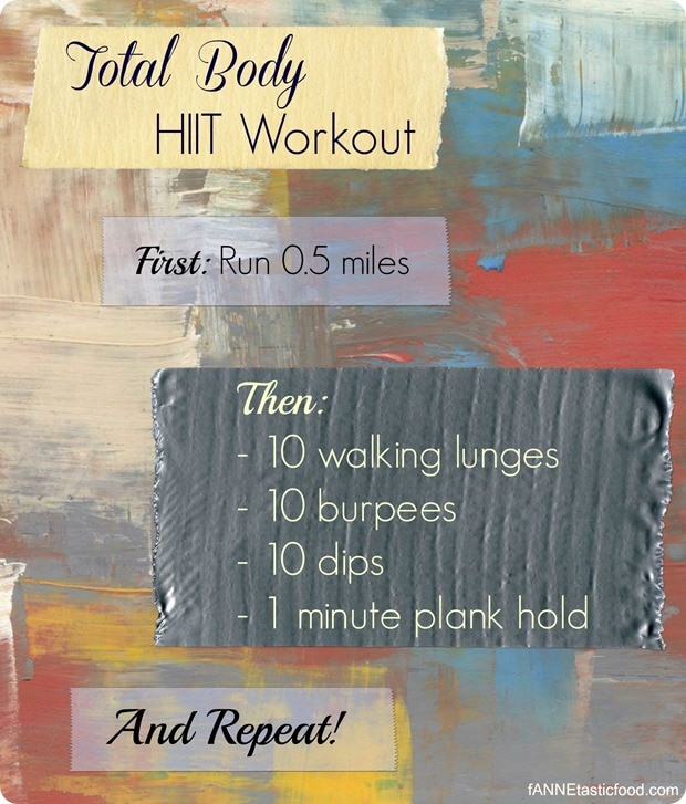 And of course feel free to modify the moves as you see fit! I wanted to include some good cardio (hi, running and burpees) plus strength moves that complement running (plank hold, lunges).