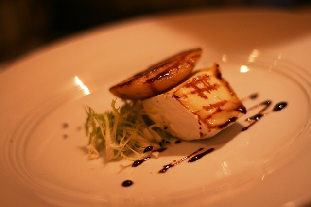 For our second course, Matt ordered the butter-roasted bosc pears with port wine, goat lady crotin, chicory, and house-made vincotto sauce.