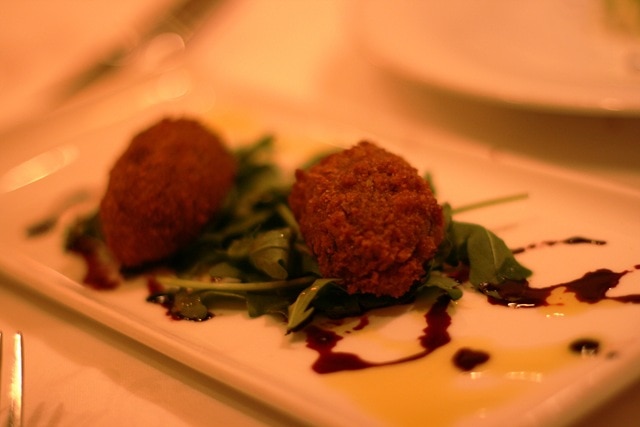 And I decided to be adventurous and ordered the arancini, which was red wine-braised oxtail stuffed into a fried risotto cake!