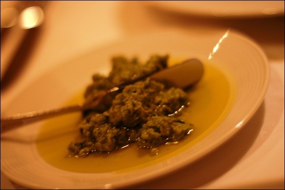 While we perused the menu, some delicious cheesy bread and this AMAZING chickpea pesto spread arrived!