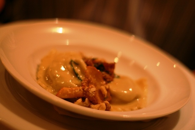 For our third course, Matt had the walnut and ricotta ravioli with yellow foot mushrooms, wilted baby spinach, and beurre fondue.