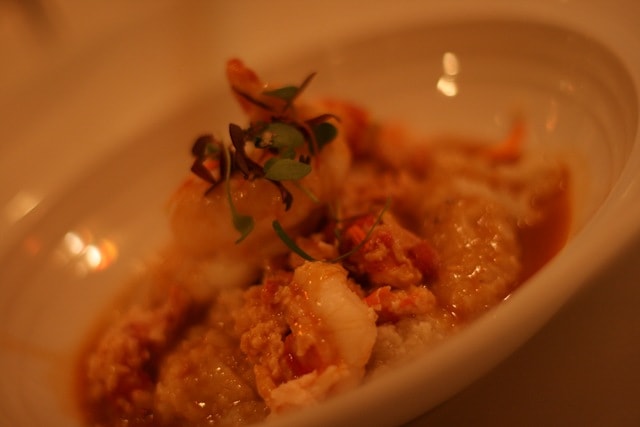 For my main dish, I ordered the butter-poached Maine lobster tail with anson mills polenta and a madeira lobster reduction. This was SO good! Definitely one of my favorites of the evening.