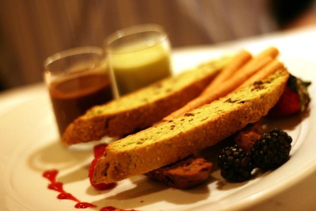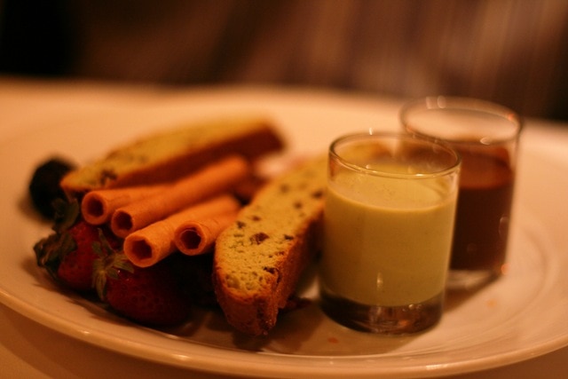 The mint anglaise was insanely good — it tasted like melted mint chocolate chip ice cream! May or may not have taken a sip directly from the shot glass, to Matt’s horror. Don’t judge. You would have done the same thing had you tasted this stuff. The biscotti was awesome, too!