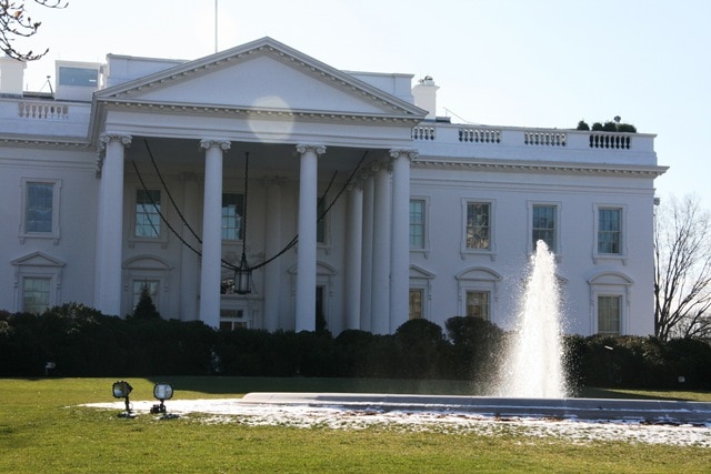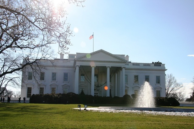 Below is a view of one of the gardens to the right of the White House where they film a bunch of the President’s statements — check out all those cameras and lights! (And the Washington Monument saying hello behind them!)