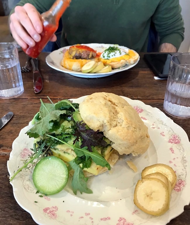 The other food highlight was a fun date with Matt yesterday – a bunch of my Instagram followers have recommended Stomping Ground in Del Ray area of Alexandria for excellent biscuit sandwiches, so Matt and I thought it would be fun to check it out. They were right – delicious! I went with the seasonal frittata (caramelized onions + peppers) biscuit, and added their lemony avocado mash and greens to the mix. It was awesome and the ambiance was fun too. We’ll def be back.