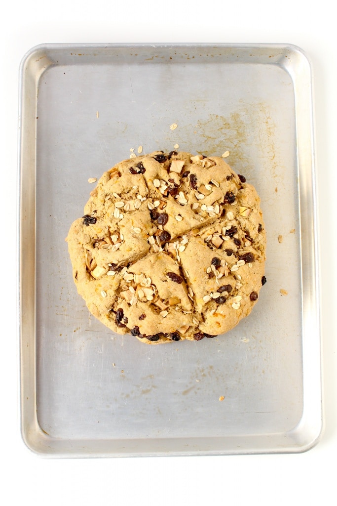 This vegan and whole wheat take on Irish soda bread has a wonderfully crunchy crust with a soft and fruity inside. Enjoy topped with butter and jam!