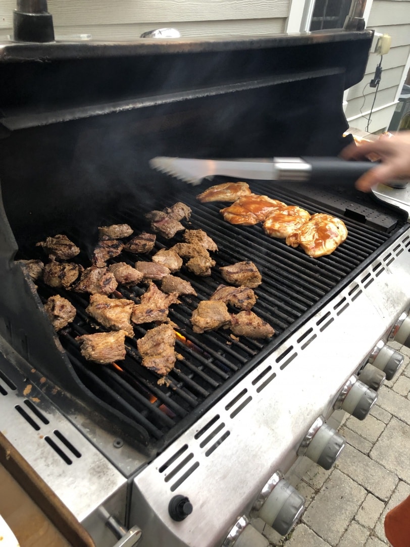 And the chicken, steak, and corn we were eating this week were originally leftover from Monday, when we had some friends over for a Labor Day BBQ.